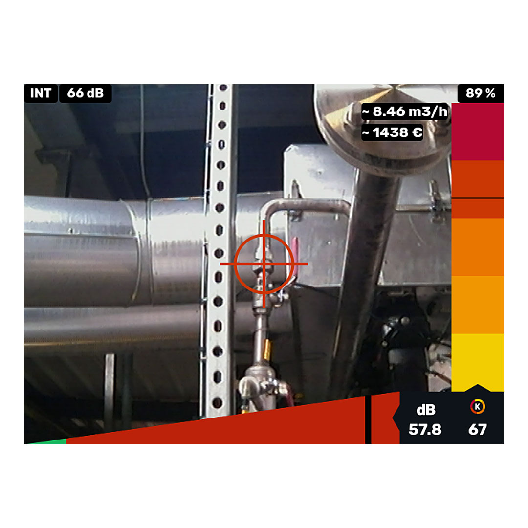 Se och fotografera läckans exakta position vare sig det rör tryckluft, ånga, trycksatt gas och vakuum.